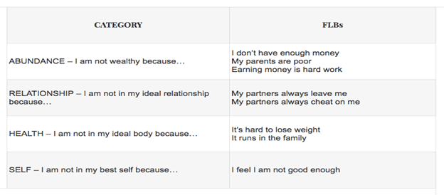 If you need to fix an area of your life, you need to identify the different FLBs that you have in that specific area.